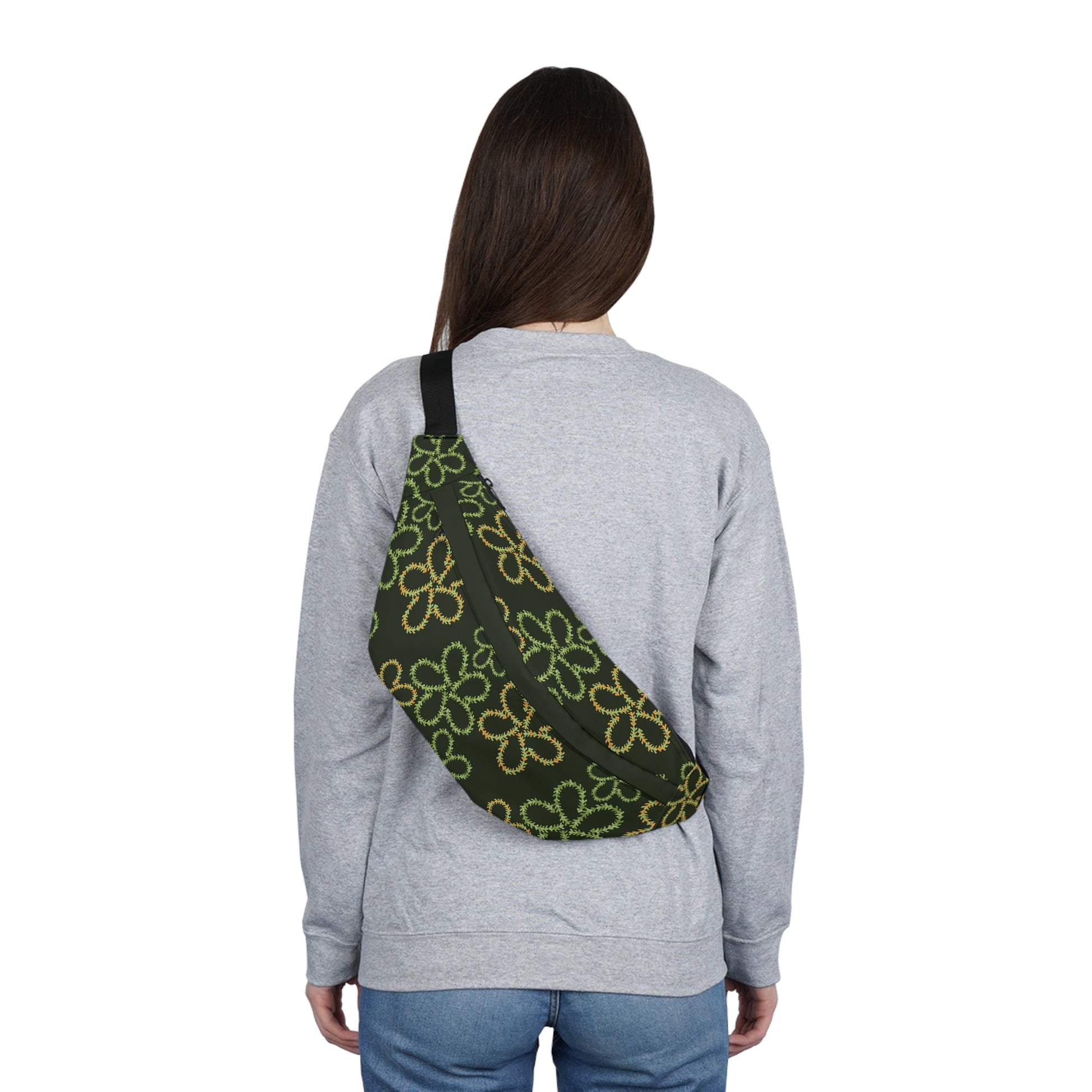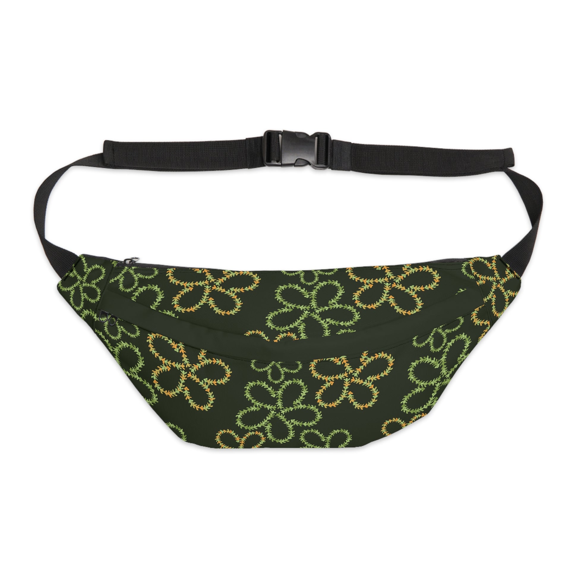 Featuring our newest collection of patterns, take this practical but stylish Pakalana Lei Flower fanny pack on your next adventure! Featuring sturdy alloy hardware, a zipper closure, and an adjustable belt for a perfect fit, this Hawaii-inspired, large fanny pack makes life easier by keeping all your necessary items within arm's reach. It can be worn as a traditional fanny pack or shoulder bag!
