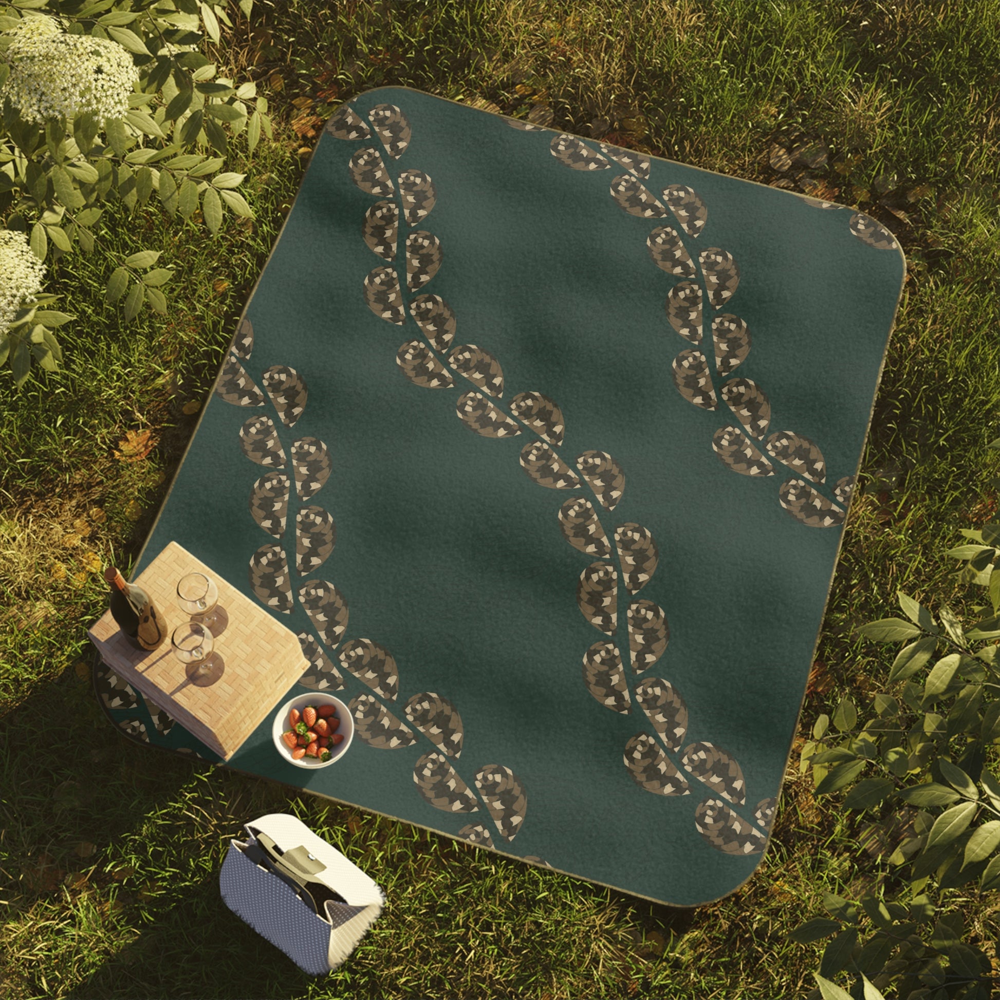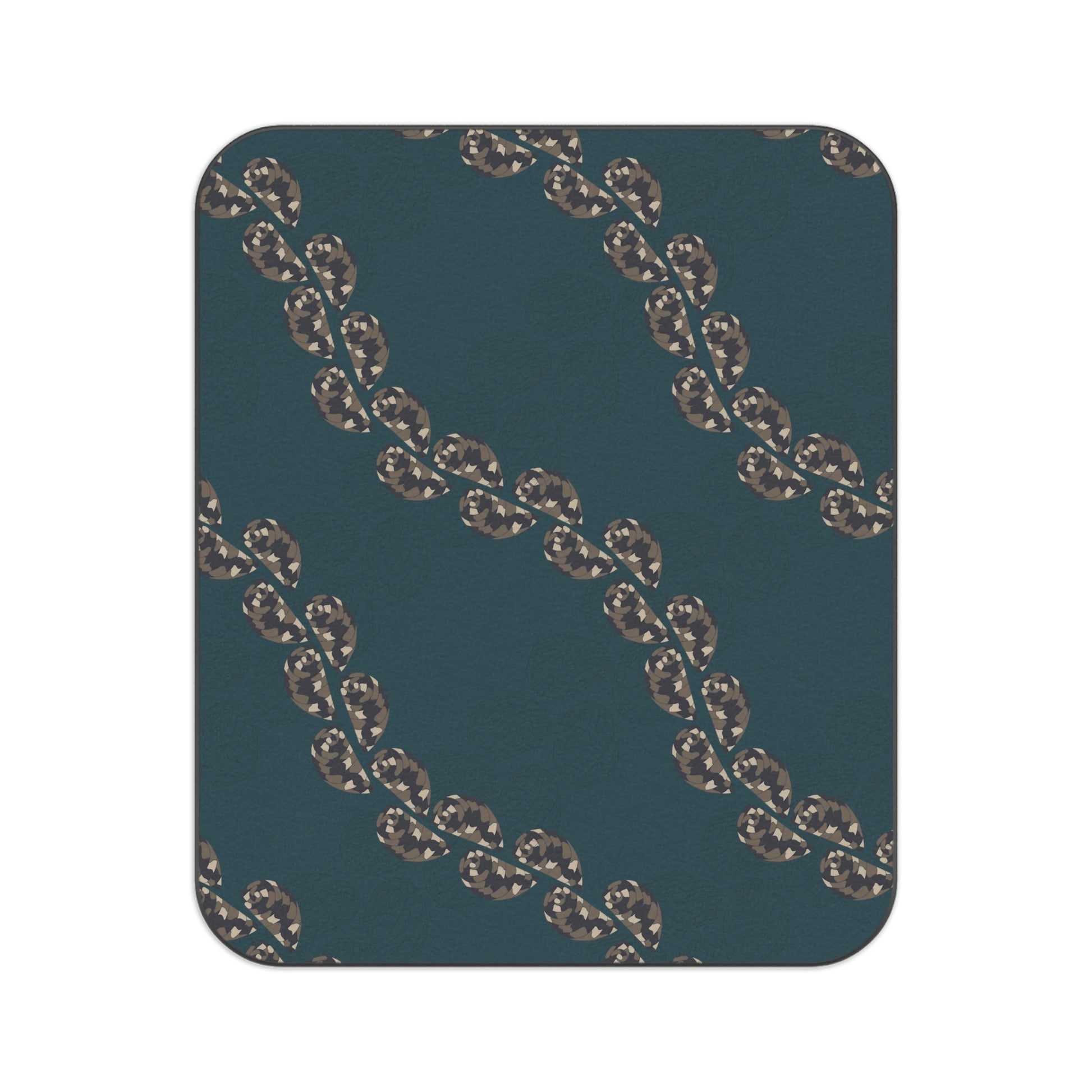 This outdoor blanket features our Kupee Shell Lei design. The kupee is a sea snail that can be eaten and its shell is prized for lei-making. It can be found in a variety of colors.